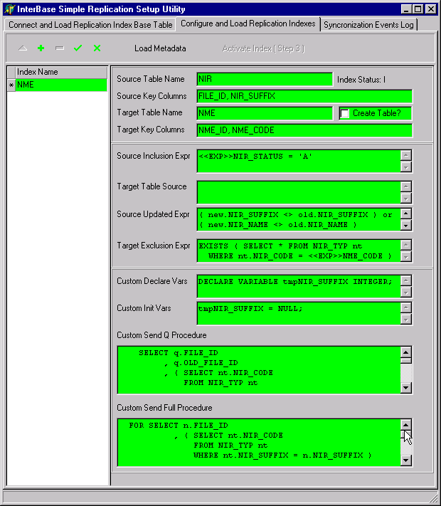 As you define a replication index, various domains, tables, triggers, stored procedures and generators are created. They all start with the